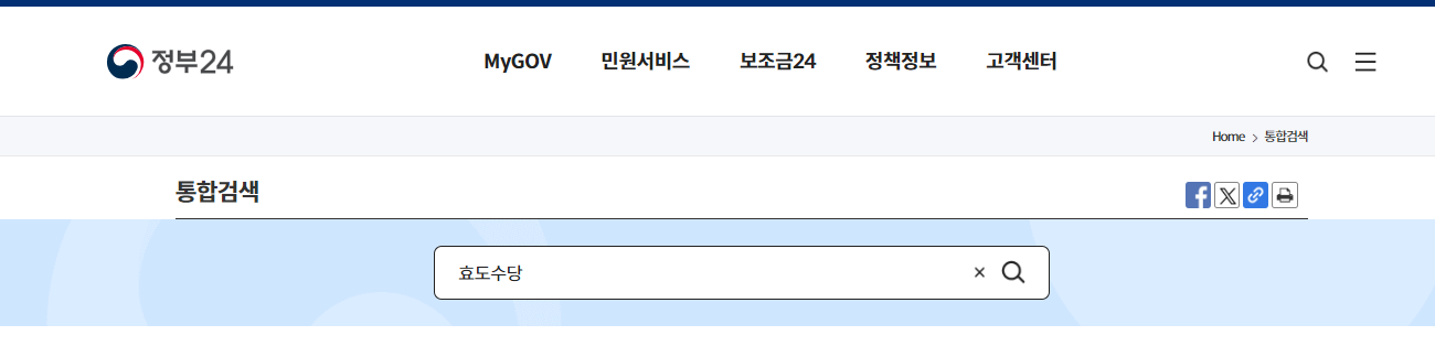 정부 24시에서 효도수당을 검색합니다