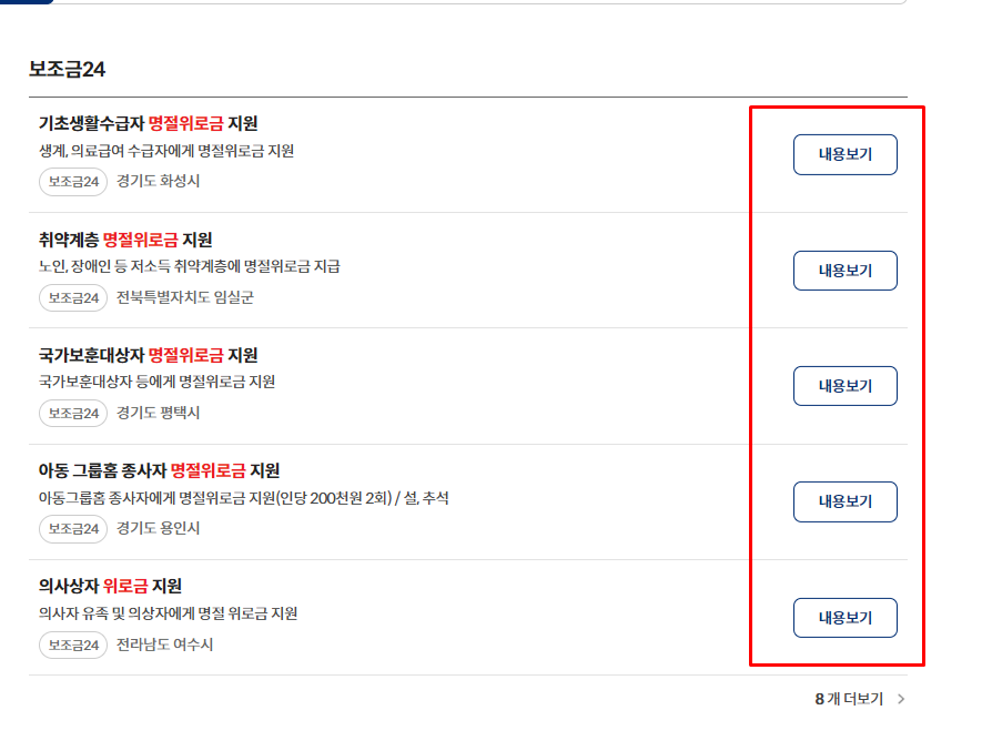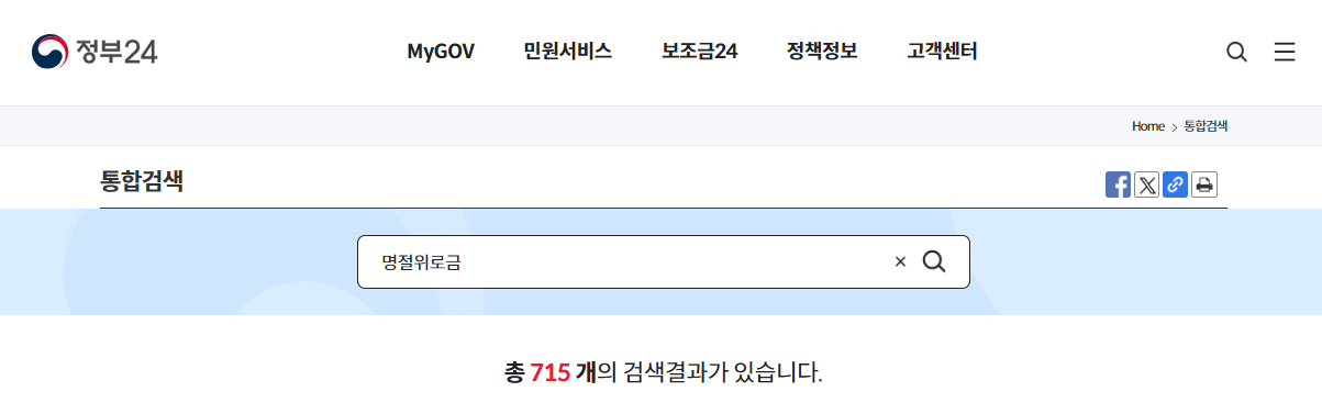 정부24에서 명절위로금 검색